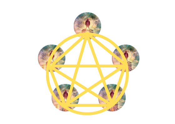 Este símbolo de la geometría sagrada tiene diversos significados. Cada persona que participe en esta meditación debe encontrar los que resuenen con ella. En nuestro caso, lo que más resonó con Carol y conmigo fue el de las cinco heridas de Cristo: el primer propósito del Círculo Júpiter es contribuir a la sanación de las cinco heridas nucleares de sus cinco miembros, desde la consciencia de que la sanación de cada persona va más allá de ella.
